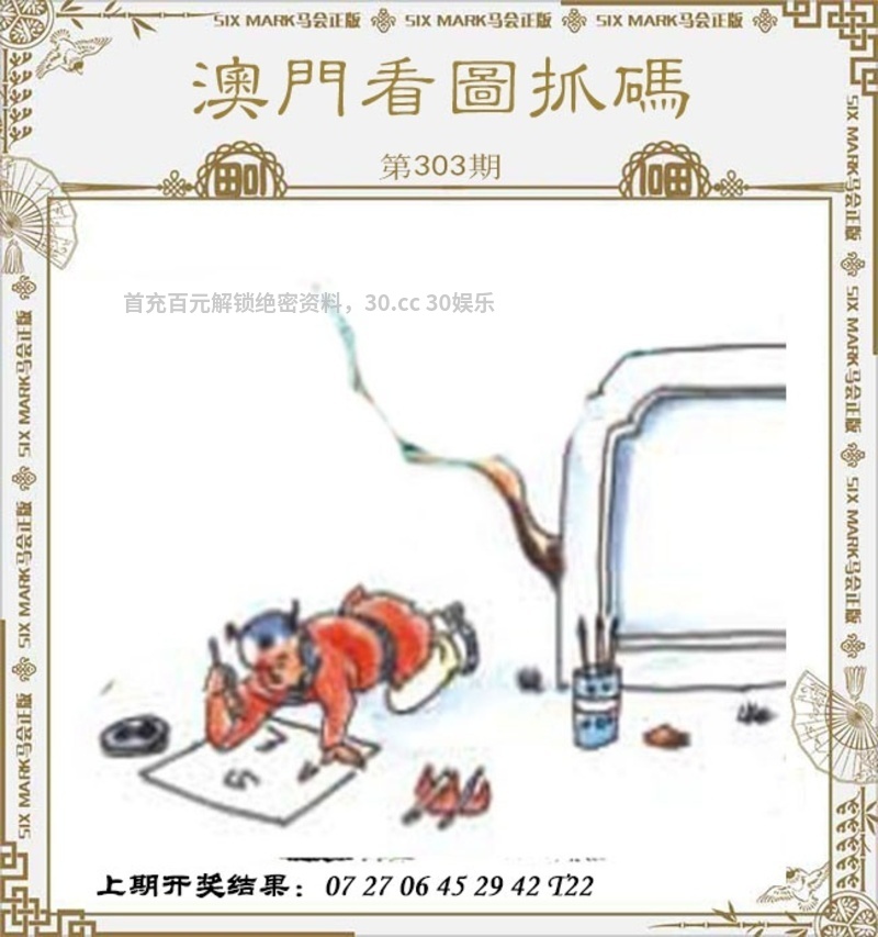 303期:【广西团队协手破解抓码图】【开兔15】 破解图文:图中有一个孩子正在地上用毛笔练习写字,他正在写数字5和7,他身旁有一个装有毛笔的笔筒和一个砚台。 综合九肖:猪牛马鸡虎兔羊龙狗 综合七肖:猪牛马鸡虎兔羊 综合十码:07.31.05.24.09.04.15.23.26.32 |